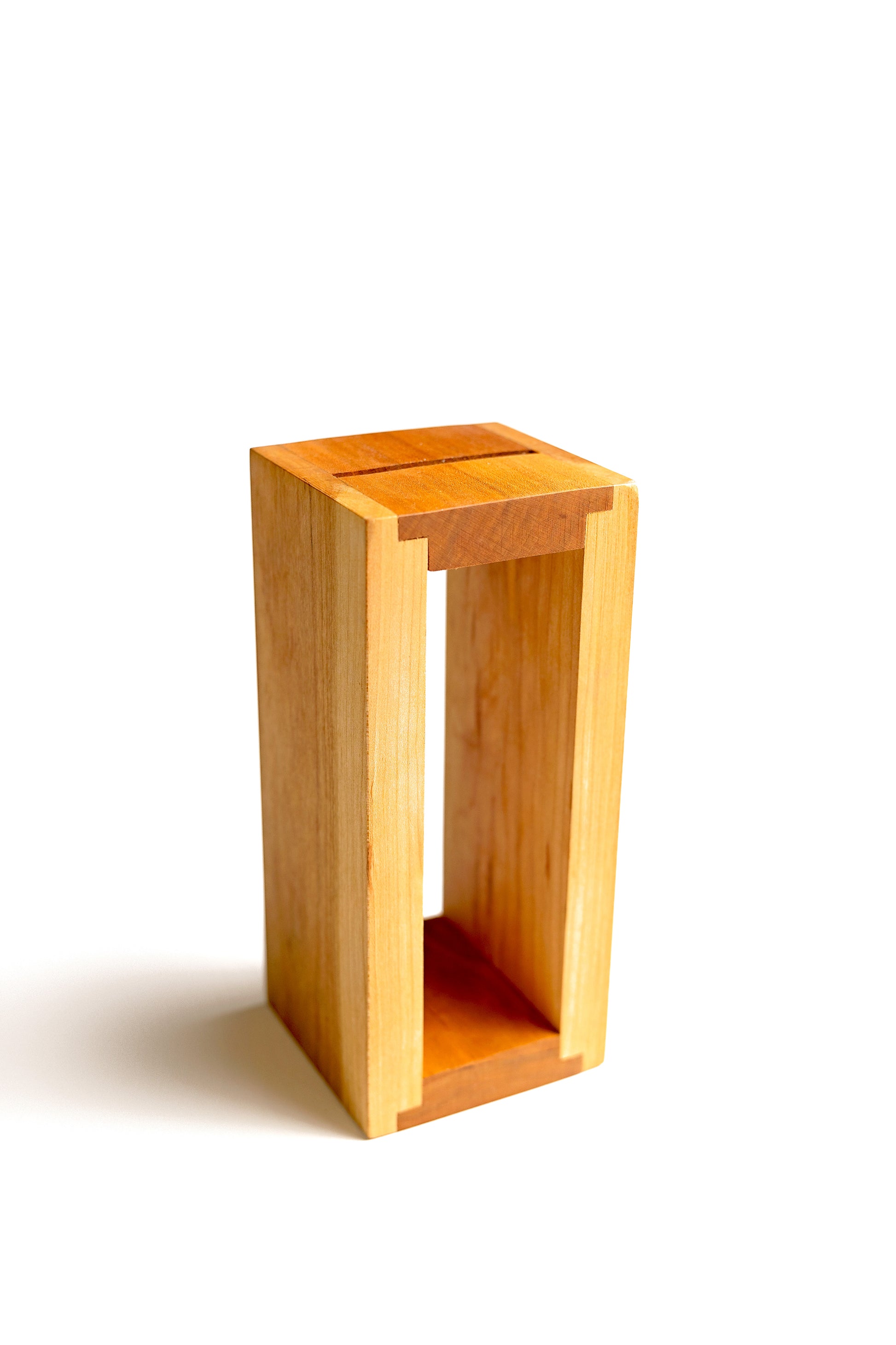Our premium knife block provides the perfect desktop pedestal for this iconic blade. Handcrafted from rich, solid cherry hardwood, its unique design presents your knife at the ready, turning it into a powerful statement piece for any office, study, or bookshelf.
